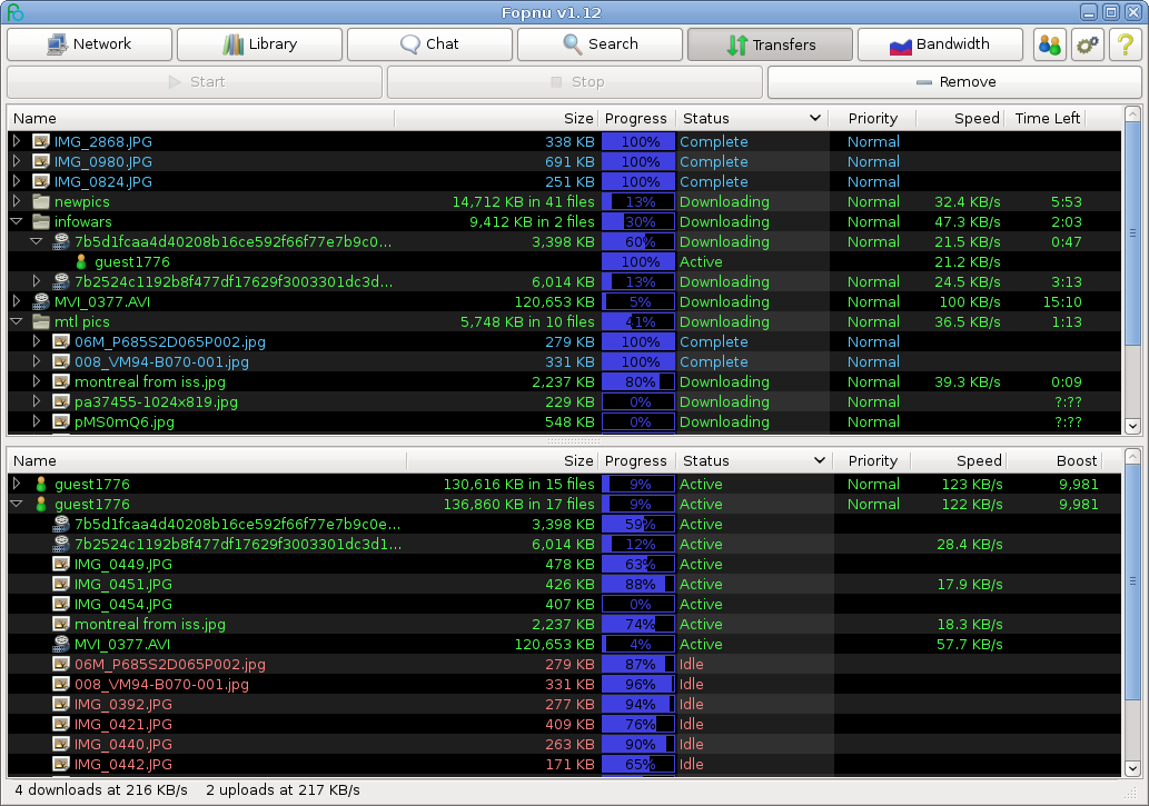 Efficient and fast transfers via re-combining and re-encoding blocks at all nodes